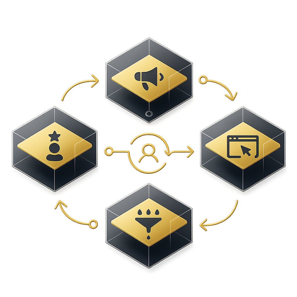 Criamos o ponto de atração ideal. Desenhamos ofertas de alto valor que capturam a atenção do seu público e iniciam uma jornada de confiança.